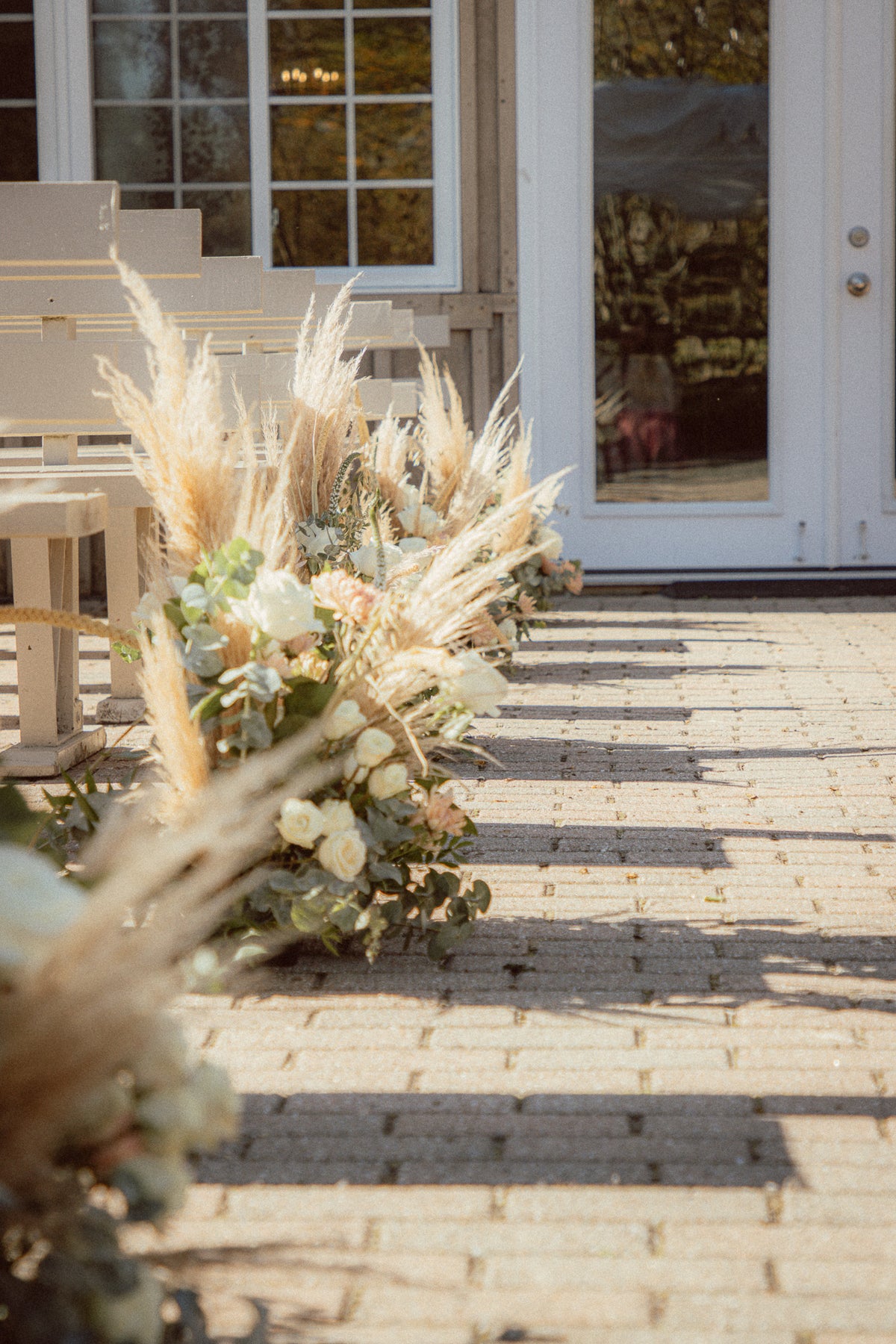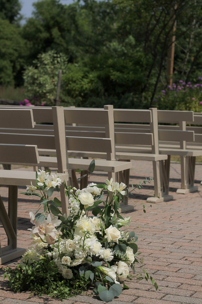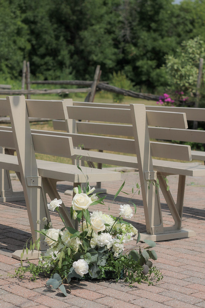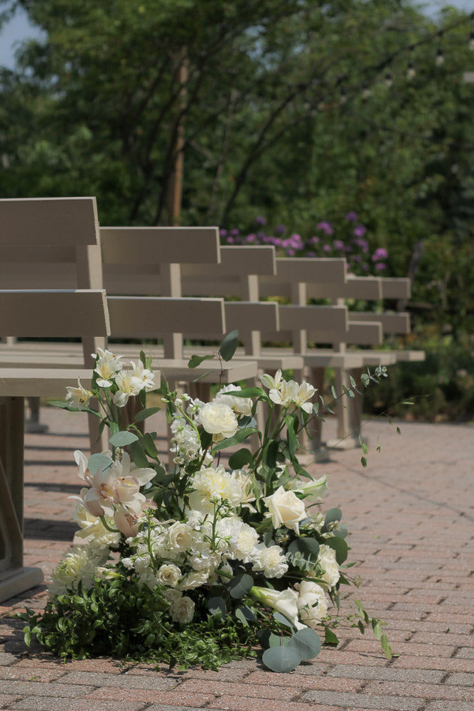 A timeless mix of crisp whites and soft creams layered with lush, natural greenery.