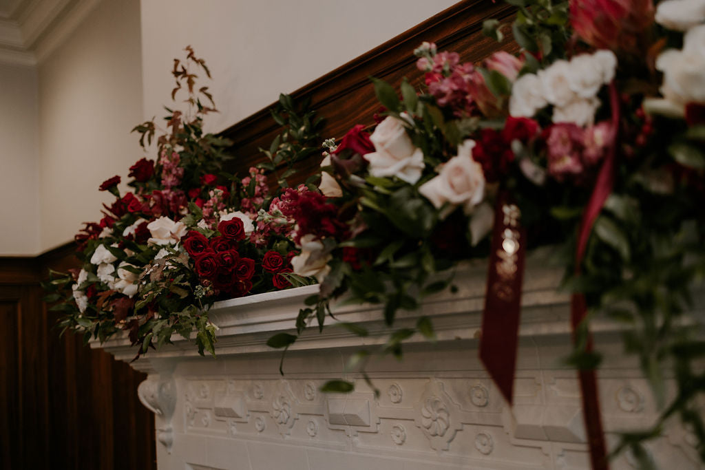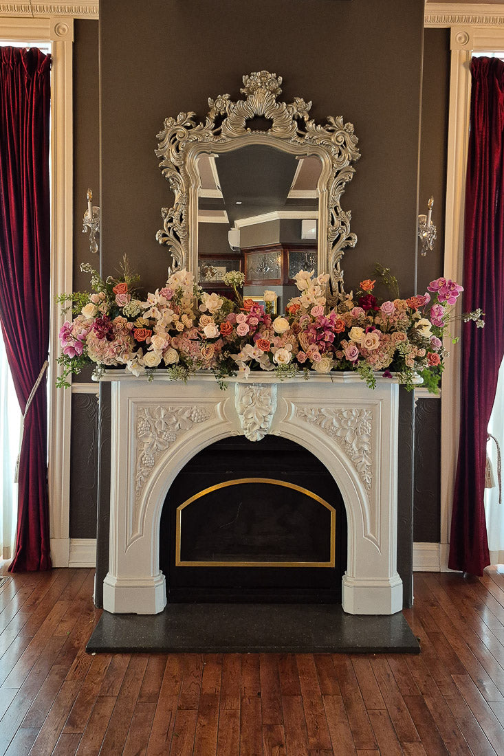 Our Fireplace Florals are designed to beautifully highlight fireplaces and mantels at Ottawa wedding venues and event spaces.