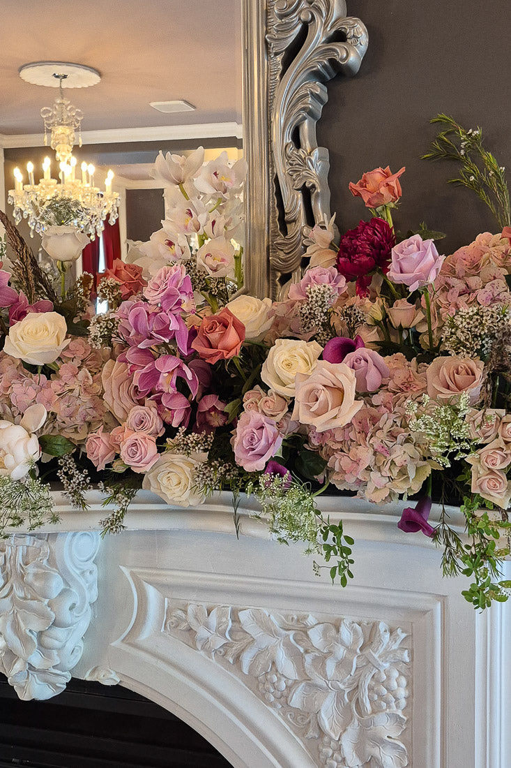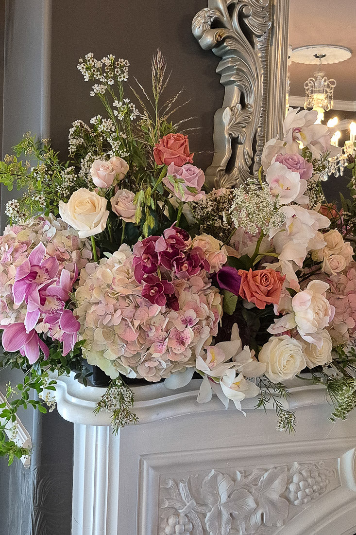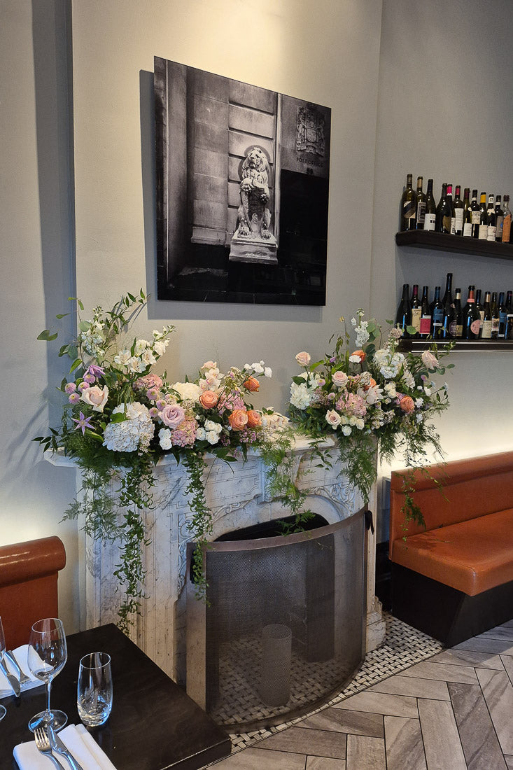 Designed with seasonal blooms and premium greenery, each fireplace floral is a one-of-a-kind floral artwork. Flower varieties may vary based on seasonality and availability, while the overall style, palette, and scale are always thoughtfully maintained.
