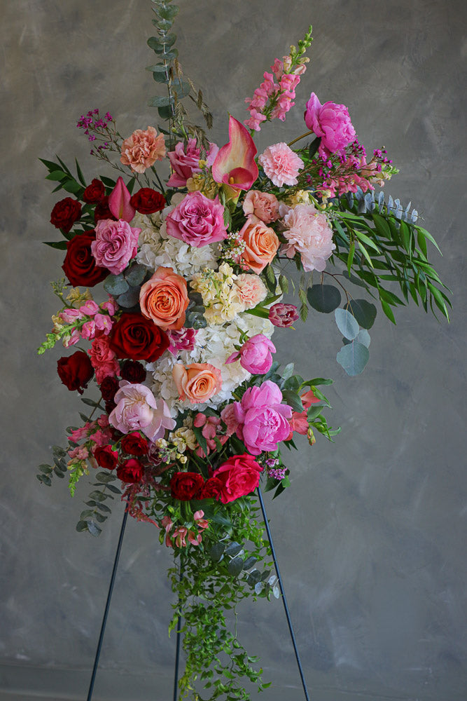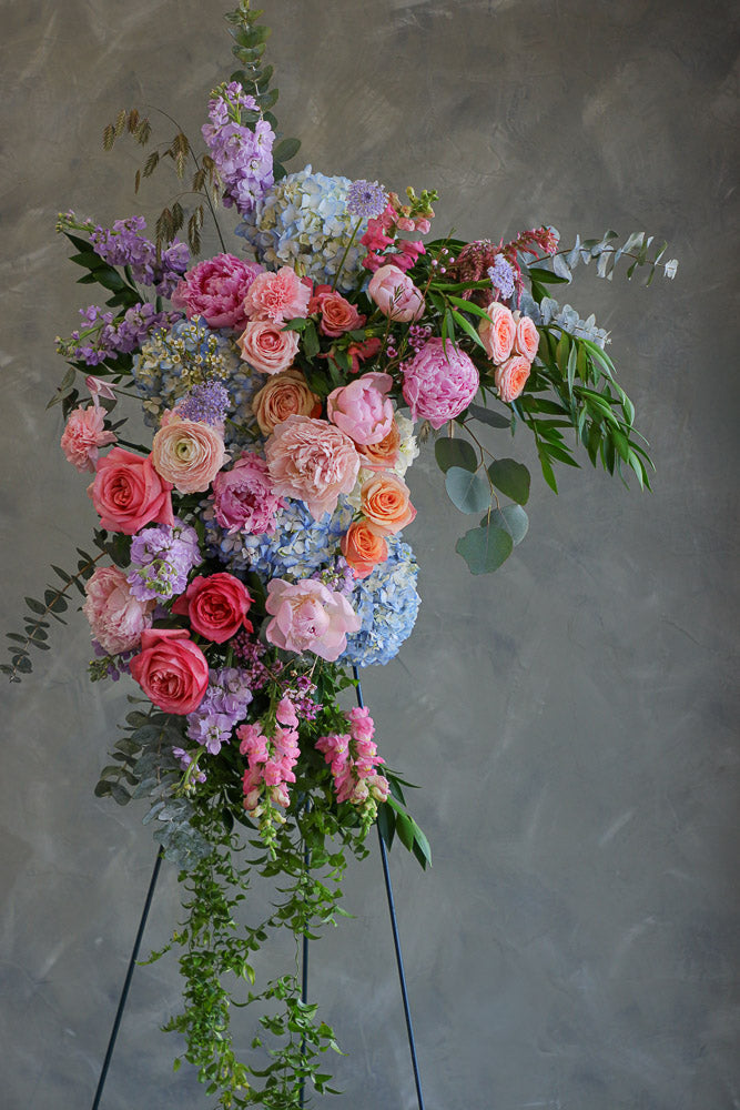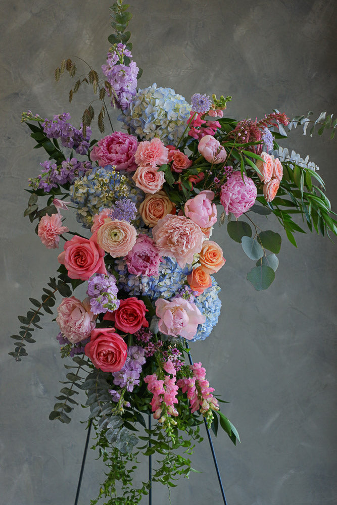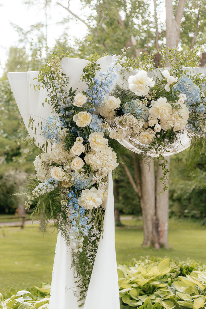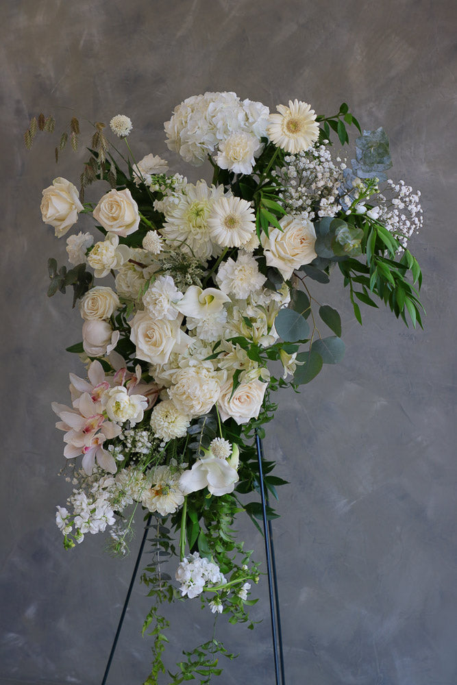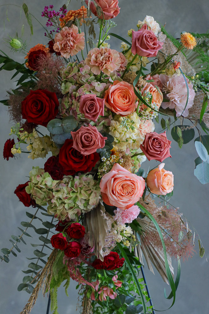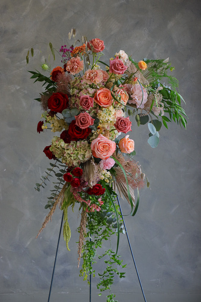 As with all Nectar Flowers designs, each arch piece is a one-of-a-kind floral artwork. Flower varieties may vary depending on season and availability, but the overall style, color palette, and fullness will always be thoughtfully maintained.